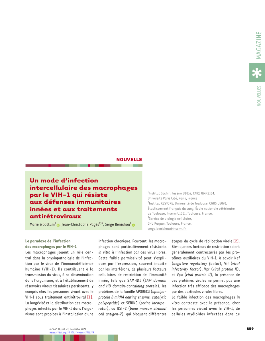 Un mode d’infection intercellulaire des macrophages par le VIH-1 qui résiste aux défenses immunitaires innées et aux traitements antirétroviraux